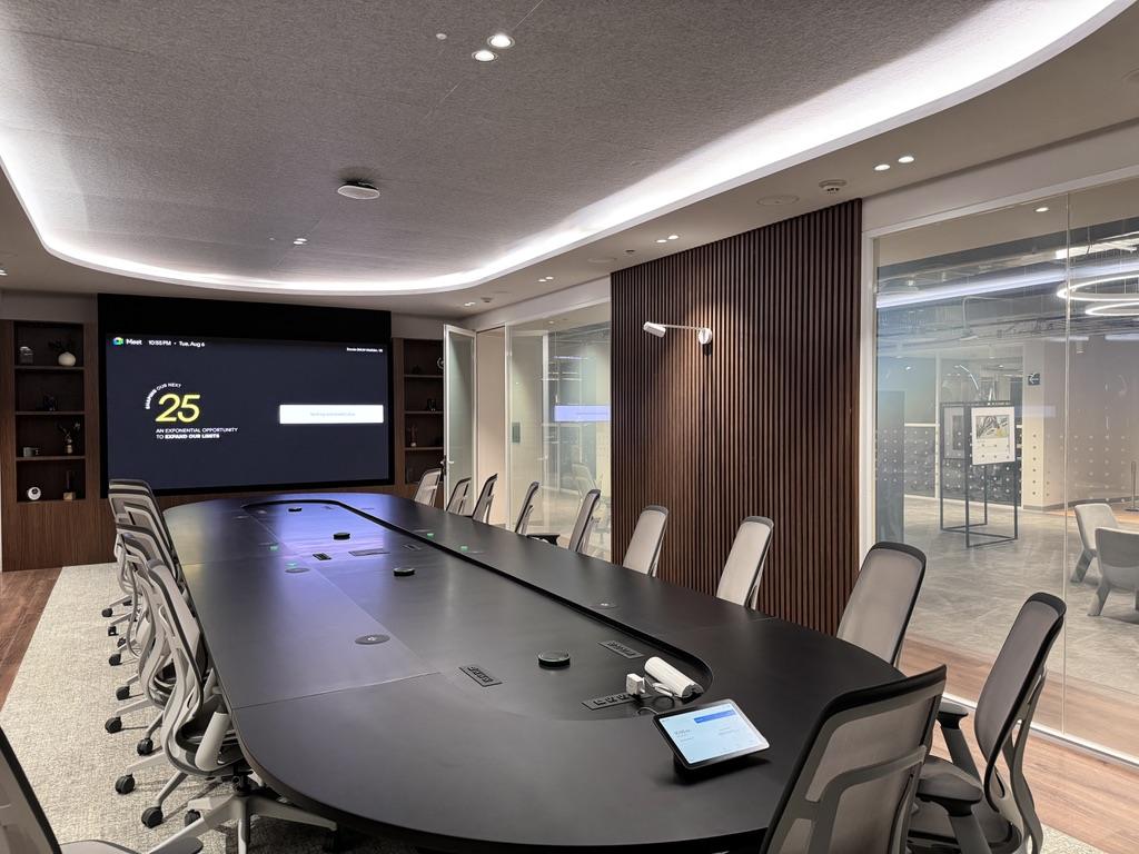 - SOW: Extensive AV installation across various meeting spaces, including a large boardroom, huddle rooms, and open collaboration areas.